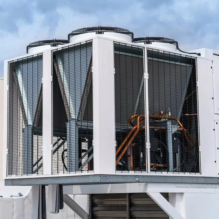 Projetos de climatização central com chillers, VRF e sistemas de água gelada.
